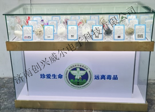 材 質(zhì):玻璃柜+LED燈帶+燈光禁毒LOGO+電源+底座柜+鈦金邊不銹鋼